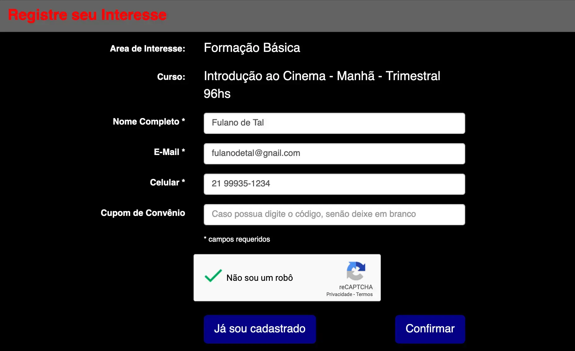 2 – O sistema verifica se há vaga ou não e envia por e-mail a confirmação de vaga no Curso e um link do segundo formulário, com as opções de pagamento.