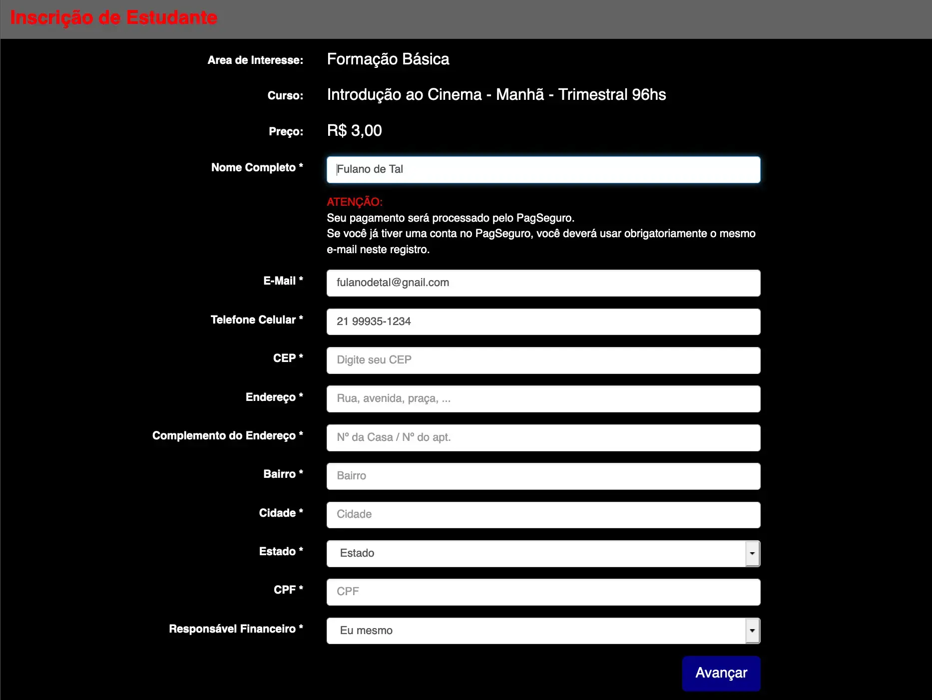 A Matrícula do Estudante se dá em três estágios: Inscrição, Pagamento e Matrícula